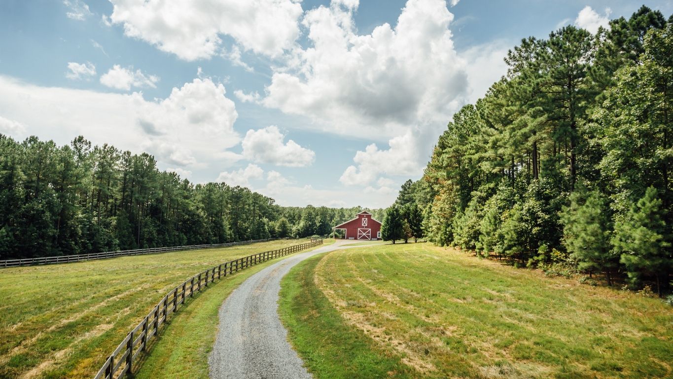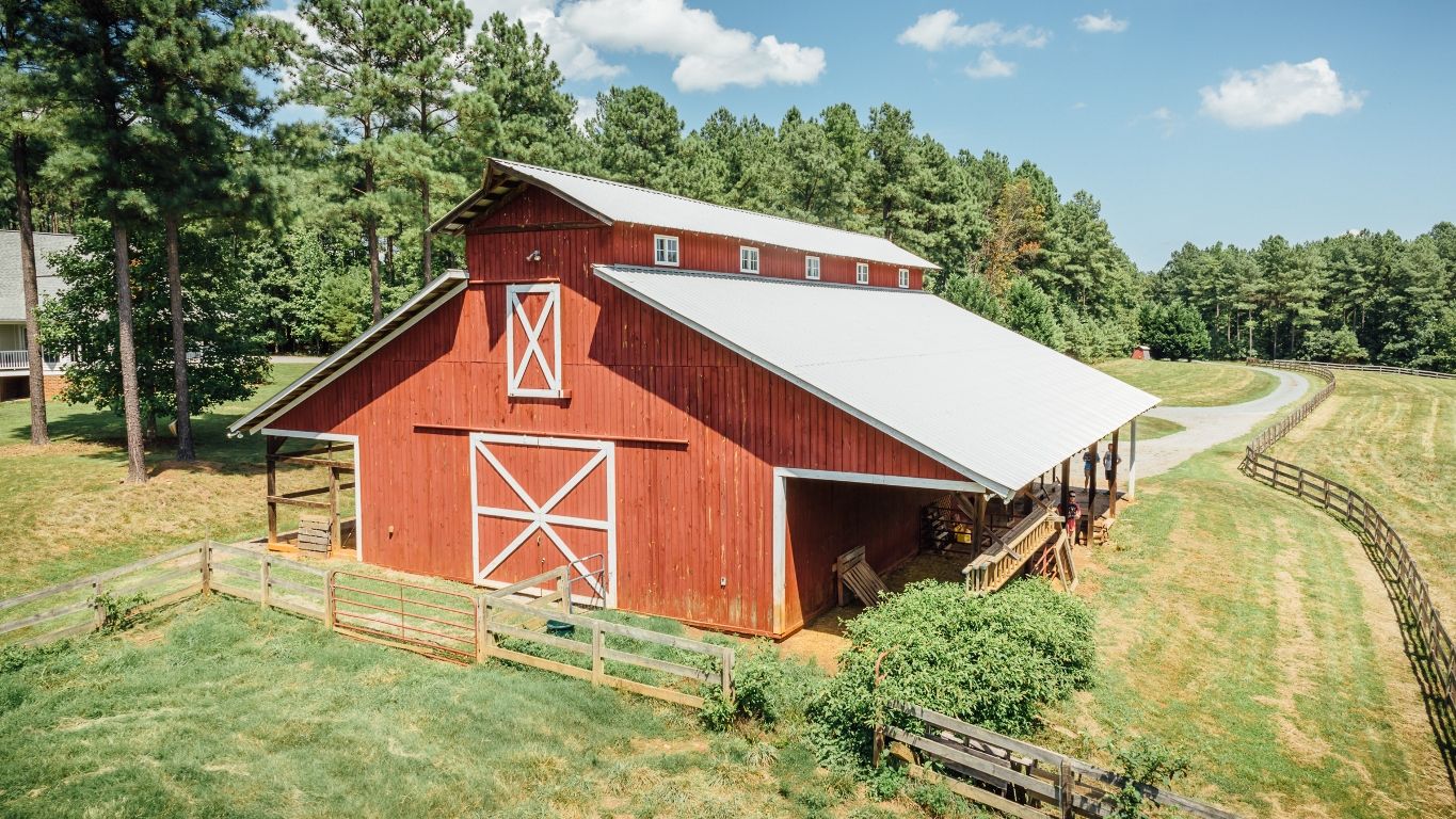 Large barn just down hill from house.